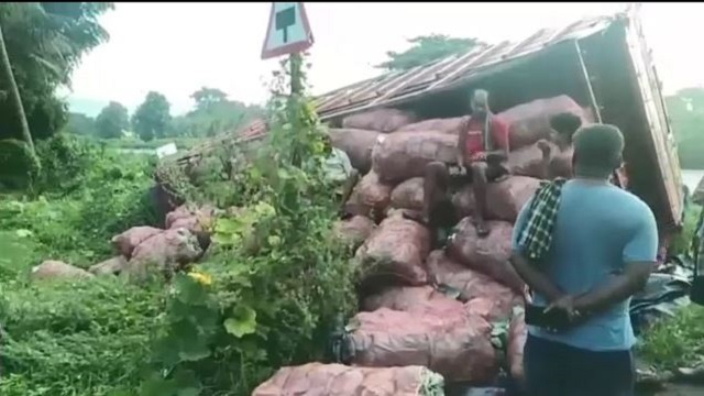 ଛତ୍ରପୁର : ଓଲଟିଲା କୋବି ବୋଝେଇ ଟ୍ରକ । ଖଲ୍ଲିକୋଟ ଥାନା ଅନ୍ତର୍ଗତ ୧୬ ନଂ ଜାତୀୟ ରାଜପଥ ଡିମିରିଆ ଛକରେ ଦୁର୍ଘଟଣା । କର୍ଣ୍ଣାଟକରୁ ଭୁବନେଶ୍ବର ଆସୁଥିଲା ଟ୍ରକ । ବିଳମ୍ବିତ ରାତିରେ ଗାଡିଟି ଭାରସାମ୍ୟ ହରାଇ ଓଲଟି ପଡିଥିବାବେଳେ ଡ୍ରାଇଭର ଅଳ୍ପକେ ବର୍ତ୍ତି ଯାଇଛନ୍ତି । ରାସ୍ତା କଡରେ ଓଜାଡି ହୋଇପଡିଥିଲା ବସ୍ତା ବସ୍ତା କୋବି । ପୋଲିସ ଦୁର୍ଘଟଣାସ୍ଥଳରେ ପହଞ୍ଚି ତଦନ୍ତ ଆରମ୍ଭ କରିଛି ।