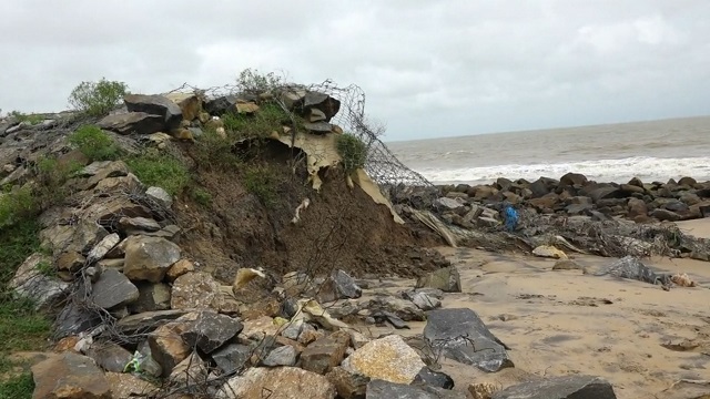 ରାଜନଗର: ପେଣ୍ଠ ନିକଟରେ କୂଳ ଲଙ୍ଘୁଛି ସମୁଦ୍ର । ଉଗ୍ର ମୁଖା ହୋଇ ସ୍ଥଳଭାଗ ଆଡ଼କୁ ମାଡ଼ି ଆସୁଛି । ସୁରକ୍ଷା ଯୋଗାଇ ଦେବା ପାଇଁ ନିର୍ମାଣ ହୋଇଥିବା ପଥର ବନ୍ଧ ଧସିବାରେ ଲାଗିଛି । ଫଳରେ ରାଜନଗର ବ୍ଲକର ସମୁଦ୍ର କୂଳିଆ ଗାଁ ଗୁଡ଼ିକ ପ୍ରତି ବିପଦ ସୃଷ୍ଟି ହୋଇଛି ।