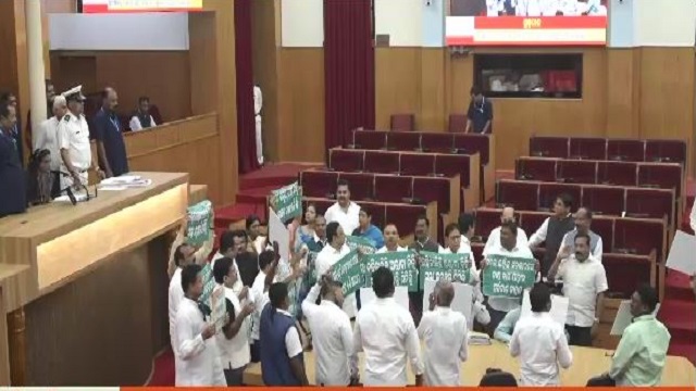ଭୁବନେଶ୍ୱର : ଚାଷୀ ଝଡରେ ଆଜି ବି ଧୋଇଗଲା ବିଧାନସଭା । ଚାଲିପାରିଲା ନାହିଁ ଗୃହ । ପ୍ରଶ୍ନକାଳ ଆରମ୍ଭରୁ ବିରୋଧୀ ବିଜେଡି ଓ କଂଗ୍ରେସ ସଦସ୍ୟମାନେ ଗୃହ ମଧ୍ୟଭାଗକୁ ବ୍ୟାନର ଓ ପ୍ଲାକାର୍ଡ ଧରି ଆସି ସରକାରୀଙ୍କ ବିରୋଧରେ ନାରାବାଜି କରିଥିଲେ । କଟନି ଛଟନି ବନ୍ଦ କରିବା, ଧାନ କୁଇଣ୍ଟାଲ ପିଛା ୩୧୬୯ ଟଙ୍କା ଚାଷୀଙ୍କୁ ଦେବା, ସବସିଡ ପାଇଁ ୧୫୦ କୁଇଣ୍ଟାଲ ସୀମା ଉଠାଇବା ଆଦି ପ୍ରସଙ୍ଗକୁ ନେଇ ସରକାରଙ୍କୁ ଜବାବ ମାଗୁଛନ୍ତି ବିରୋଧୀ ।