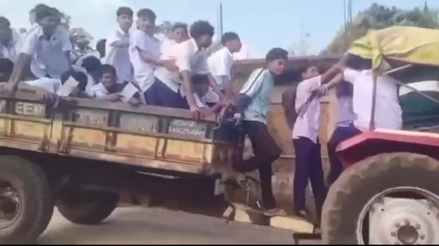 ଚଳିତ ବର୍ଷ ମାଟ୍ରିକ ପରୀକ୍ଷାର ପ୍ରଥମ ଦିନ ପରୀକ୍ଷା କେନ୍ଦ୍ରକୁ ଟ୍ରାକ୍ଟରରେ ଏଭଳି ବିପଦ ସଂକୂଳ ଅବସ୍ଥାରେ ବୁହା ହୋଇ ଯାଇଥିଲେ କ.ନୂଆଗାଁ ପି.ଏମ୍ ଶ୍ରୀ ଉଚ୍ଚ ବିଦ୍ୟାଳୟର ଦଶମ ଶ୍ରେଣୀର ଛାତ୍ର । ପରୀକ୍ଷା କେନ୍ଦ୍ର କୁଡୁତୁଲି ଉଚ୍ଚ ବିଦ୍ୟାଳୟକୁ ଟ୍ରାକ୍ଟର ଟ୍ରଲିରେ ବସି ଯାଇଥିଲେ । କିଛି ଛାତ୍ର ଟ୍ରାକ୍ଟର ଟ୍ରଲି ଓ ଇଞ୍ଜିନର ଜଏଣ୍ଟ ସ୍ଥାନରେ ମଧ୍ୟ ଛିଡ଼ା ହୋଇ ଯାତ୍ରା କରିଥିଲେ । ଭିଡିଓ ଭାଇରାଲ ହେବା ପରେ ଛାତ୍ରଙ୍କ ସୁରକ୍ଷାକୁ ନେଇ ଉଠିଛି ପ୍ରଶ୍ନ । କିଛି ଘଟିଥିଲେ ଏଥିପାଇଁ କିଏ ଦାୟୀ ହୋଇଥାନ୍ତା । ଏହାକୁ ନେଇ ବିଭିନ୍ନ ମହଲରେ ଅସନ୍ତୋଷ ପ୍ରକାଶ ପାଇଛି । ବିଦ୍ୟାଳୟ କର୍ତ୍ତୃପକ୍ଷ ଙ୍କ ପକ୍ଷରୁ ଦଶମ ଶ୍ରେଣୀ ପିଲାଙ୍କୁ ପରୀକ୍ଷା କେନ୍ଦ୍ରକୁ ଯିବା ପାଇଁ ସେପରି କିଛି ବ୍ୟବସ୍ଥା ଗ୍ରହଣ କରାଯାଇନଥିବା ବେଳେ ଛାତ୍ର ମାନେ ଏପରି ଭାବେ ଟ୍ରାକ୍ଟରରେ ଯାଇଥିବା ଜଣା ପଡିଛି ।