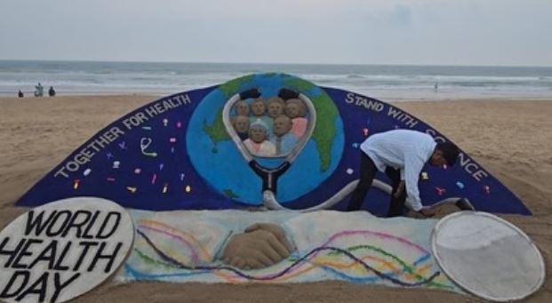 ପୁରୀ : ଆଜି ହେଉଛି ବିଶ୍ୱ ସ୍ୱାସ୍ଥ୍ୟ ଦିବସ। ପ୍ରତିବର୍ଷ ଏପ୍ରିଲ ୭ ତାରିଖକୁ ବିଶ୍ଵ ସ୍ଵାସ୍ଥ୍ୟ ଦିବସ ଭାବେ ପାଳନ କରାଯାଉଛି। ଏହି ଅବସରରେ ଆଜି ପ୍ରସିଦ୍ଧ ବାଲୁକା ଶିଳ୍ପୀ ଏବଂ ପଦ୍ମଶ୍ରୀ ପୁରସ୍କାରପ୍ରାପ୍ତ ସୁଦର୍ଶନ ପଟ୍ଟନାୟକ ପୁରୀ ବେଳାଭୂମିରେ ଏକ ମନମୋହକ ବାଲୁକା କଳା ତିଆରି କରିଛନ୍ତି। ବାଲୁକା କଳା ମାଧ୍ୟମରେ ସେ ସ୍ୱାସ୍ଥ୍ୟକର୍ମୀ ମାନଙ୍କୁ ସାଲ୍ୟୁଟ୍ କରିଥିଲେ। ଏବଂ “ସ୍ୱାସ୍ଥ୍ୟ ପାଇଁ ଏକାଠି, ବିଜ୍ଞାନ ସହିତ ଠିଆ ହୁଅନ୍ତୁ” ବାର୍ତ୍ତା ପ୍ରଚାର କରିଥିଲେ। ପ୍ରାୟ ଛଅ ଫୁଟ ଉଚ୍ଚତା ବିଶିଷ୍ଟ ଏହି ଚମତ୍କାର ବାଲୁକା କଳା ଅନେକ ଟନ୍ ବାଲି ବ୍ୟବହାର କରି ତିଆରି କରାଯାଇଥିଲା।